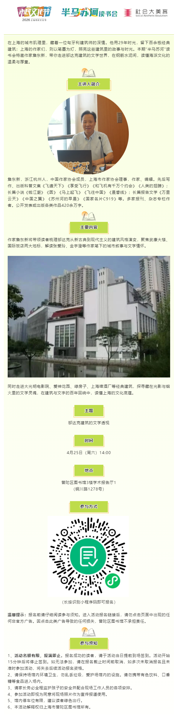 报名|建筑×文学,用文学视角,打开邬达克的建筑世界